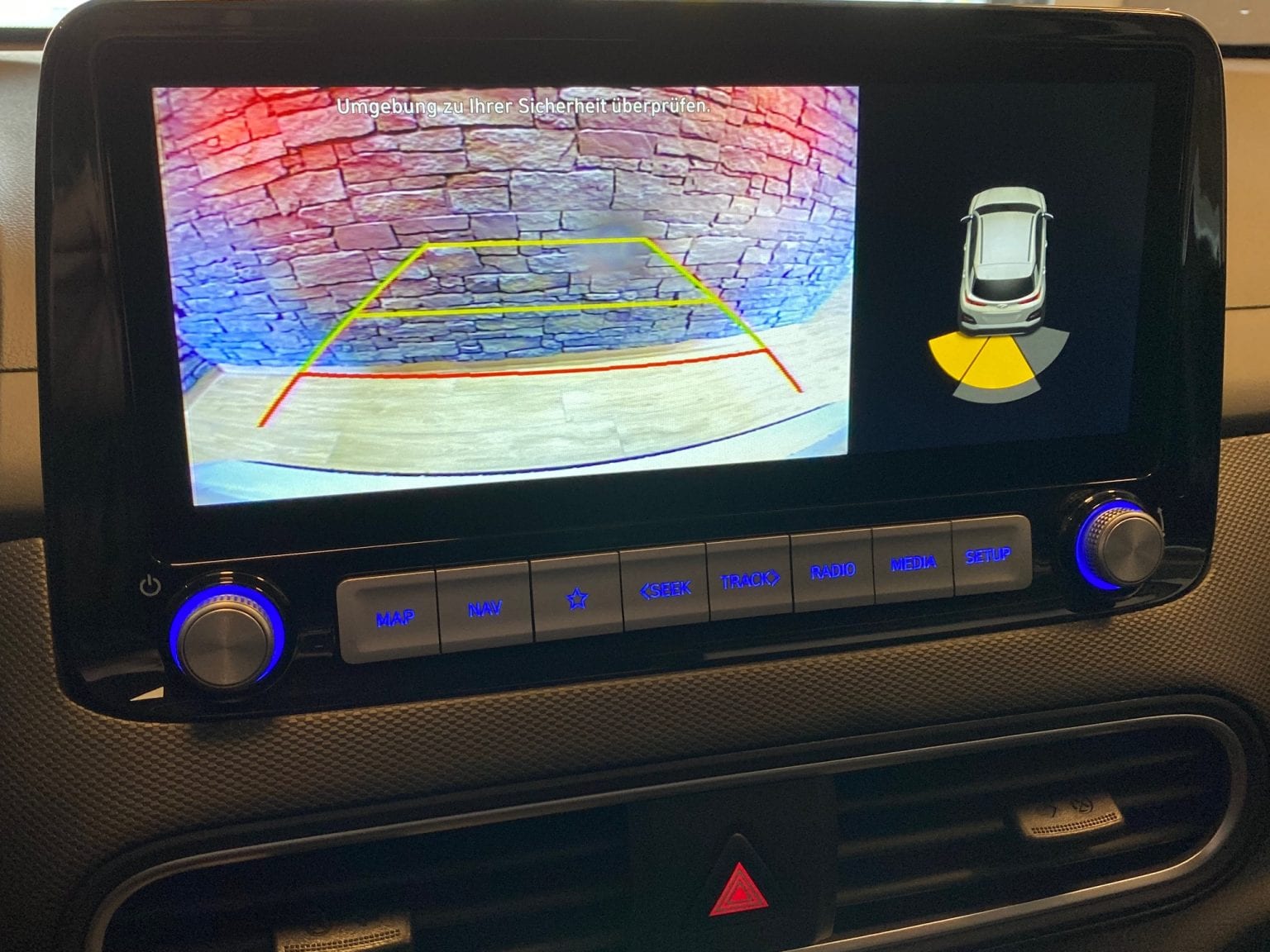 • Parkdistanzkontrolle hinten mit optischer Anzeige und Rückfahrkamera